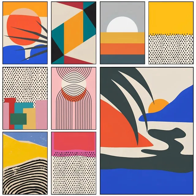 Modern Coastal Design: Combines minimal shapes and warm, balanced hues to reinterpret beach landscapes in a fresh, artistic way.